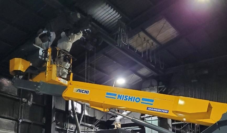 10月4日㈯に工場内に設置している天井クレーンの定期点検を実施いたしました。