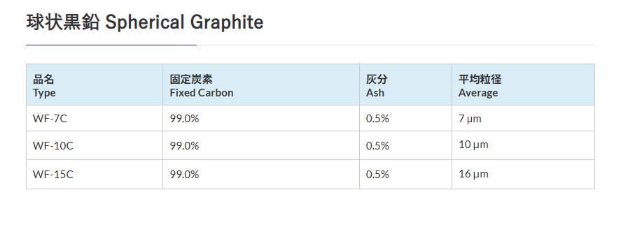 このたび弊社では、従来より取り扱っております球状黒鉛「WF-15C」に加え、